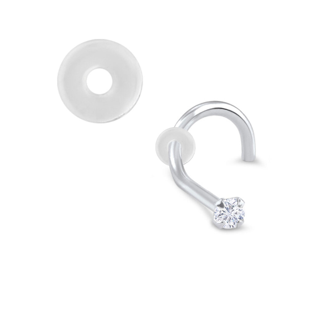 Round Glued CZ Nose Stud 925 Sterling Silver 22G