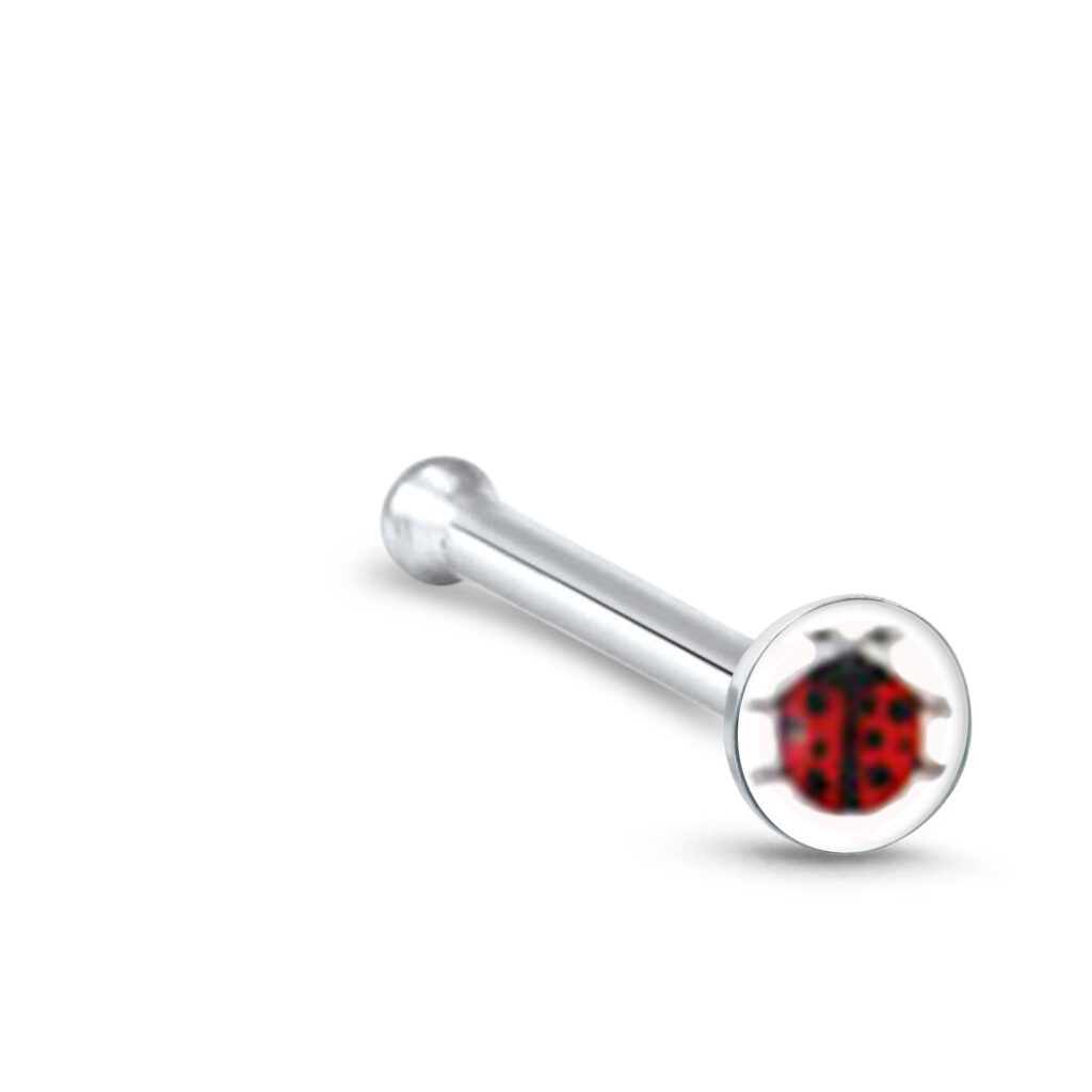 Ladybug Nose Bone Ring 925 Sterling Silver Stud 22G