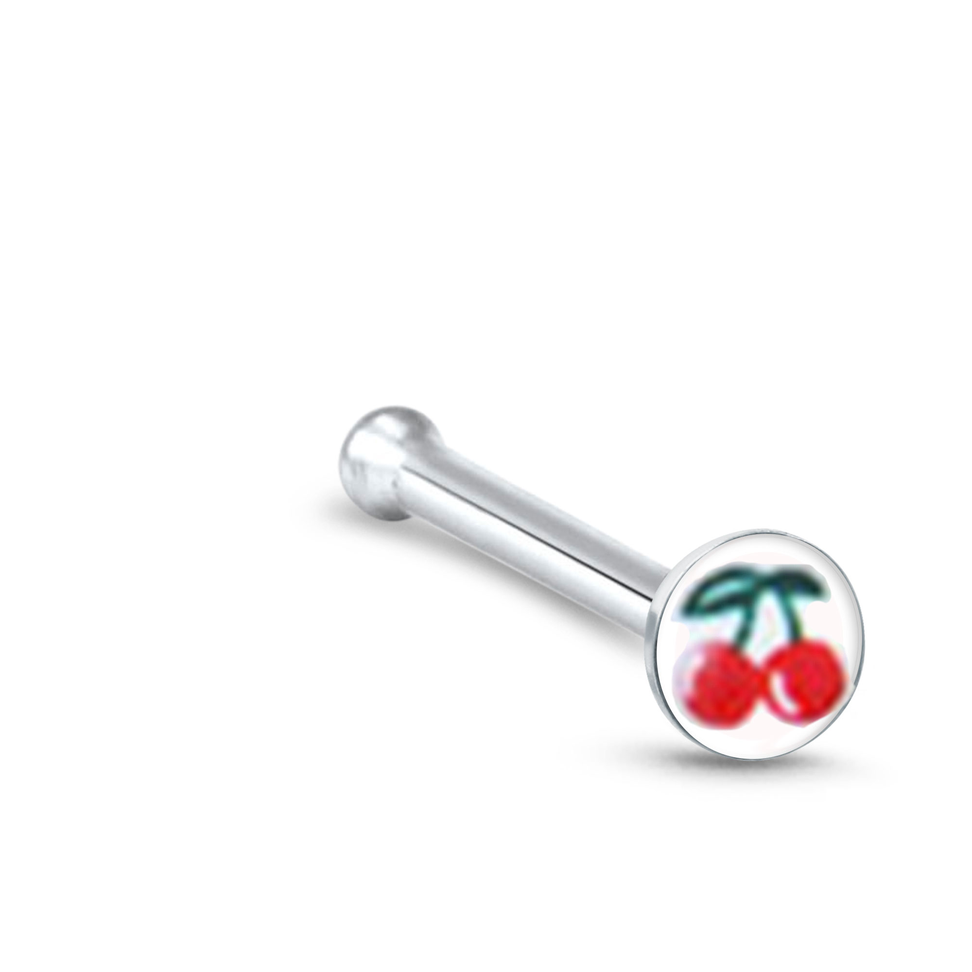 925 Grade Sterling Silver nose stud featuring a cherry design.