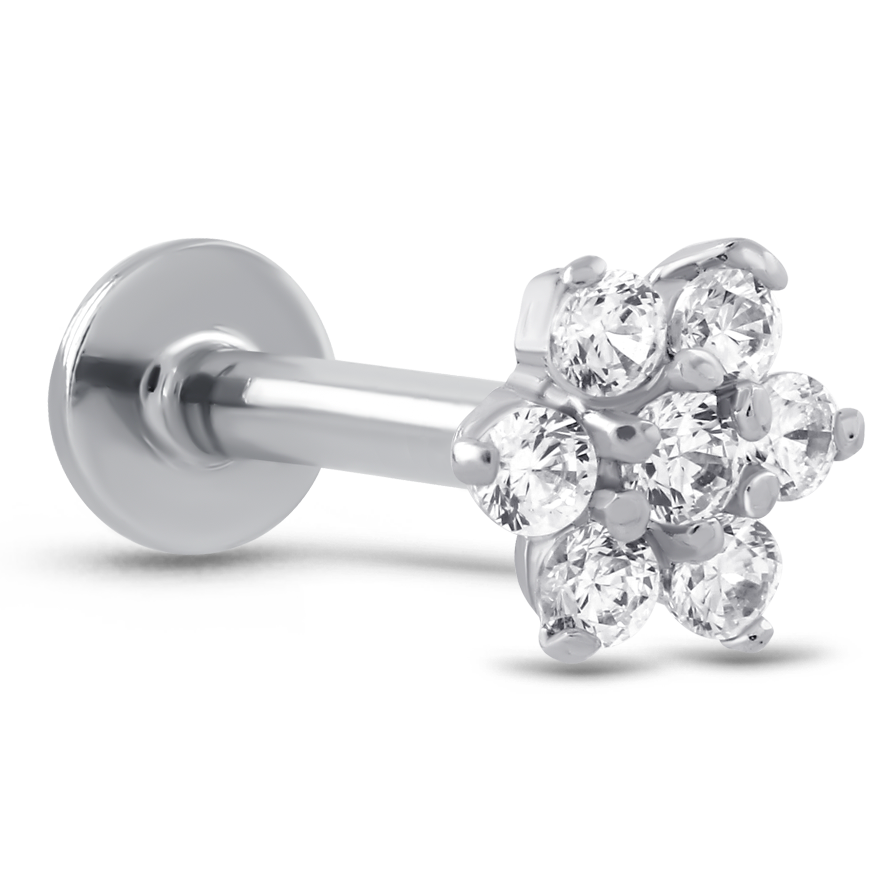 Flower CZ Labret Threadless Push Pin Stud 14K White, Yellow, Rose Gold