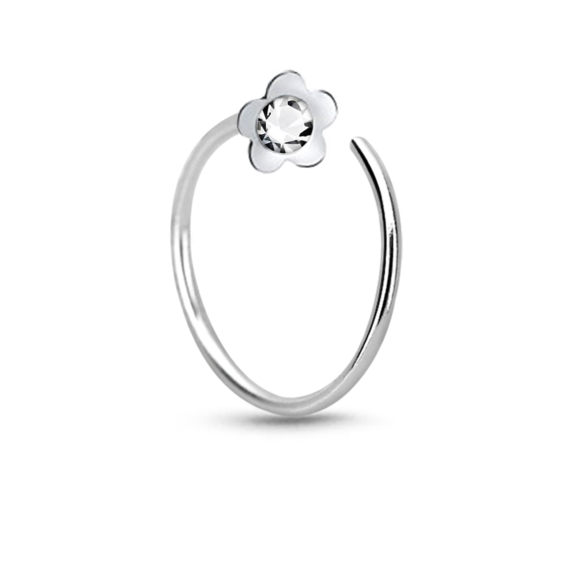 Enhance your look effortlessly with this sterling silver seamless nose hoop adorned with a sweet flower design, adding a touch of whimsy to your style.