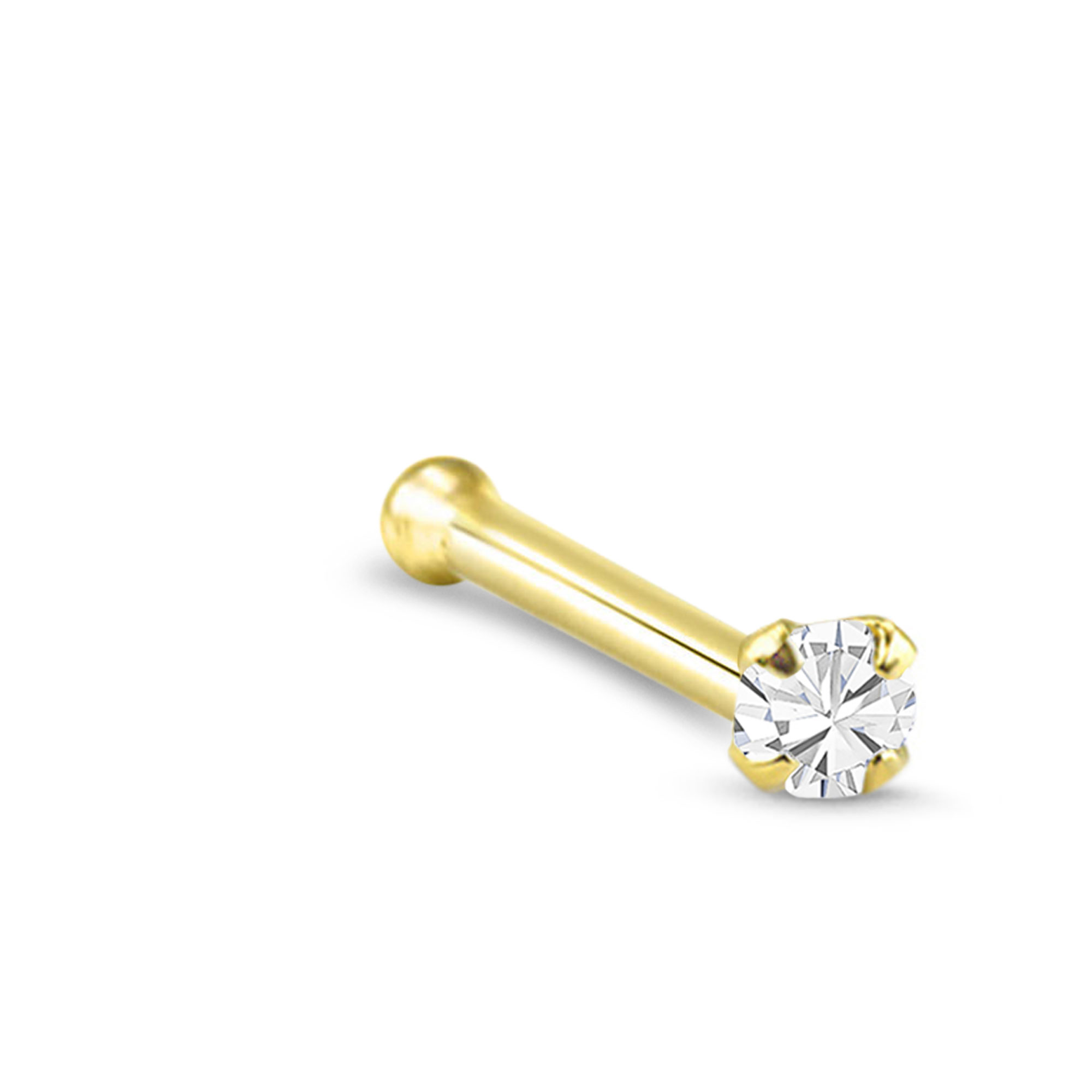 14K Solid Yellow Gold nose bone stud featuring a stunning cz stone. A sparkling simple design for everyday wear.