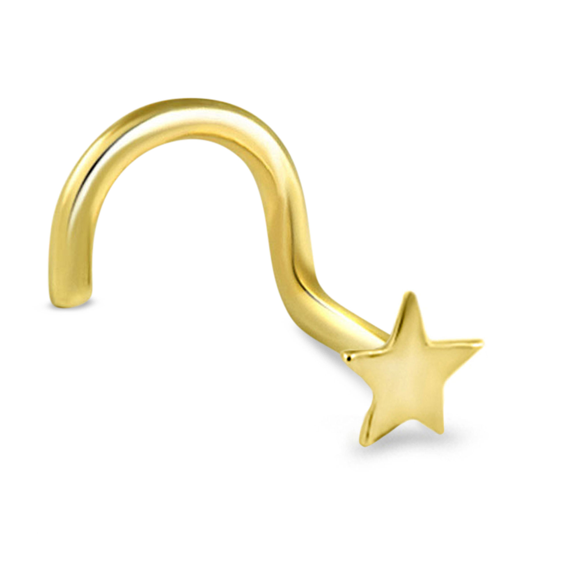 Solid Yellow Gold nose ring featuring a beautiful 3mm star designed to lay flat on your nose.